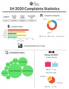 The Financial Commission continues to effectively resolve traders’ disputes and public inquiries despite global disruptions and elevated trader and broker activity around the world. Continued trading opportunities in global markets, as well as interest in trading Forex and CFDs have resulted in an continued growth of key operating metrics for the organization. The Dispute Resolution Committee witnessed a rise in trading related complaints, which increased by over 52% in the first half of 2020 as compared to 2H 2019 and confirms the trader activity witnessed by brokers. Meanwhile, increased dispute topics complexity and sheer volume of complaints led to a slight delay in average resolution times, which still remain quick when compared to major regulatory bodies around the world.