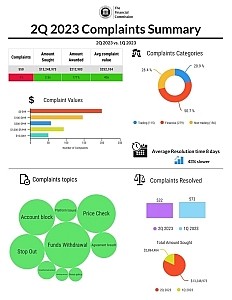 The continued subduction of market volatility, attributed to the slowing pace and in some cases pauses of interest rate hikes, and inflation globally possibly curtailed retail trading among investors in the second quarter of 2023 and led to changes in several key metrics of The Financial Commission. Specifically, the organization experienced a 3% slowdown QoQ in new complaints filed, as well as a 7% drop in the total number of complaints resolved in the quarter. Nonetheless, complaints amounts sought and awarded, as well average complaint values soared to significantly high levels. While some of the statistics were impacted by several large HNW complaints, the overall increases indicate that complaints submitted to The Financial Commission forum continue to grow in value this year and, evidently, so does the need for unbiased, independent and thorough investigation of such disputes.