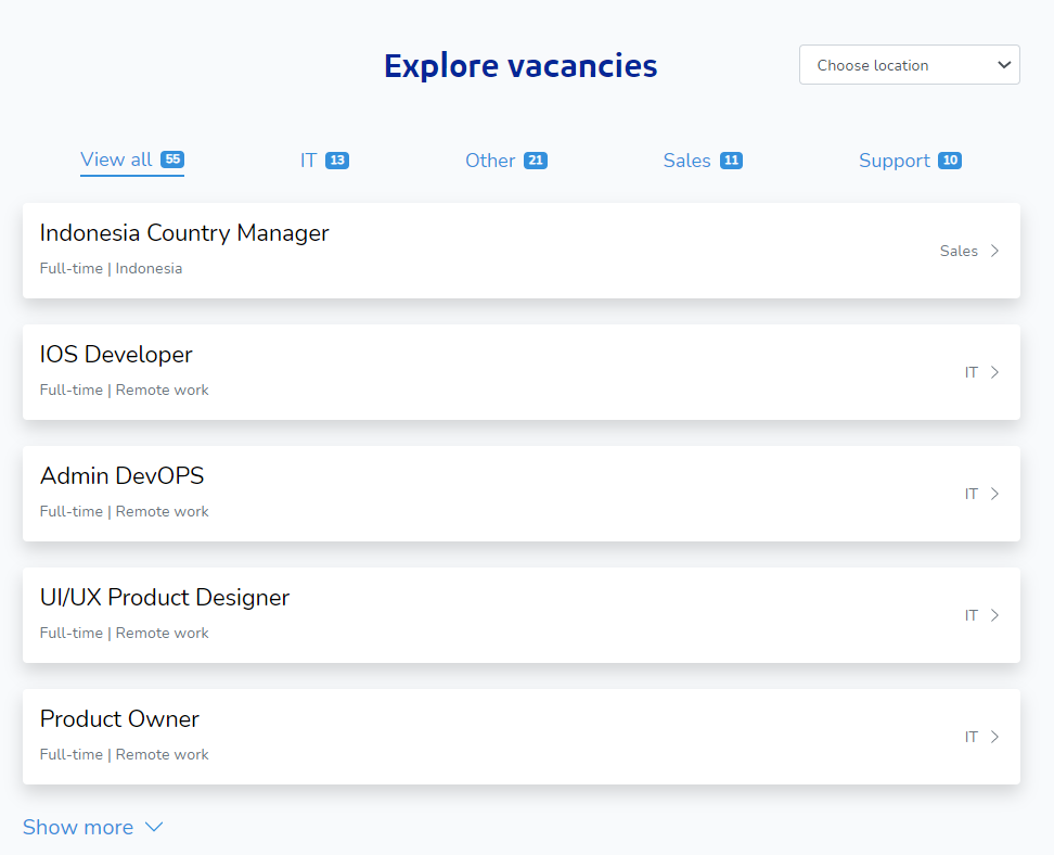 - No prepayments! Payment only after a successful hire;